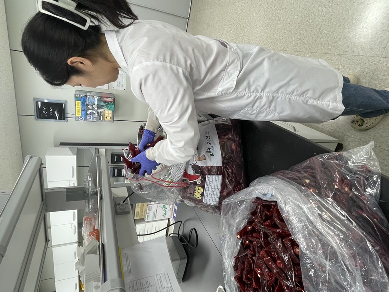 이번 검사 지원은 괴산 지역 농가의 출하 고추를 대상으로 잔류농약(345종), 중금속(납, 카드뮴) 및 방사능(요오드, 세슘)에 대해 실시하였으며, 모든 항목에서 기준 이내로 안전성이 확인되었다.
