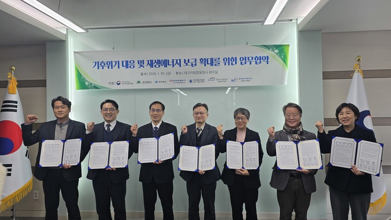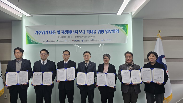 [경북 세계타임즈=한윤석 기자] 경상북도는 대구지방환경청이 주관하고 대구광역시, 한국에너지공단 대경본부, 한국전력공사 대경건설지사 등 지역 유관기관이 참여하는‘재생에너지 보급 확대를 위한 업무협약’을 2026년 1월 30일(금) 14시, 대구지방환경청 회의실에서 체결했다고 밝혔다.