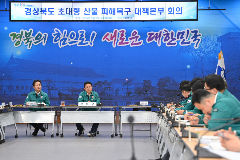 연휴 첫날인 3일에는 오전 9시에 이철우 도지사 주재로 산불 피해 대책 간부회의가 열렸고, 이날 산불 피해 지원 성금 전달을 위해 경북도청을 방문한 우원식 국회의장에게 ▵산불 피해의 실질적이고 신속한 구제와 지역재건 지원이 포함된 ‘초대형산불 피해구제 및 지원 등을 위한 특별법’ 제정 ▵임시주택 및 공공형 긴급 일자리사업의 2025년 추경 미반영에 따른 2025년 예비비와 2026년 국비 지원 건의 ▵중소기업 피해지원을 위한 개별법의 신속한 국회 통과 및 중기부 재해중소기업지원자금 무이자 지원 등이 포함된 경북 대형산불 피해대책에 대해 이철우 도지사가 직접 특별 건의했다.