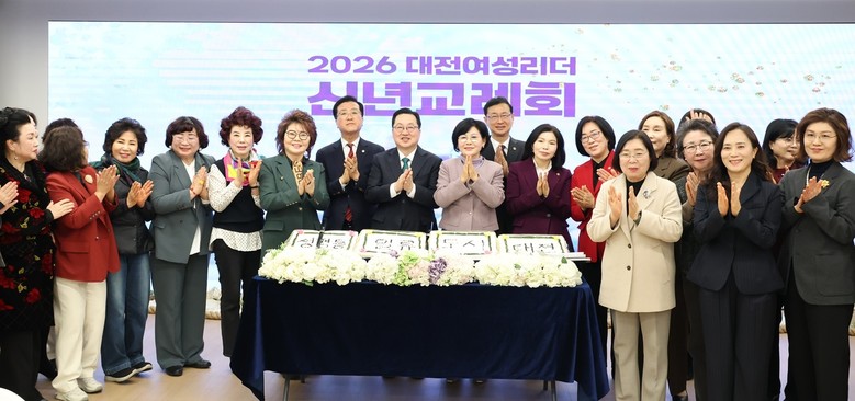 [대전 세계타임즈=이채봉 기자] 대전시는 27일 대전테크노파크 디스테이션에서 이장우 시장, 조원휘 대전시의회 의장, 여성단체 회장단, 관내 유관기관장 등 150여 명이 참석한 가운데 2026년 대전 여성리더 신년교례회를 가졌다.