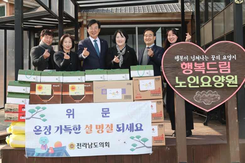[전남 세계타임즈=우덕현 기자] 전라남도의회 경제관광문화위원회 윤명희 위원장(더불어민주당, 장흥2)이 지난 1월 23일 설 명절을 앞두고 장흥에 위치한 행복드림요양원의 시설 관계자와 입소자를 찾아 따뜻한 격려와 위로의 마음을 전했다.