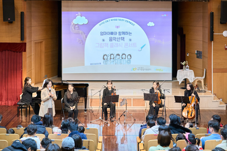 이번 특별공연은 ‘엄마·아빠와 함께 떠나는 음악 산책’을 주제로, 클래식 앙상블 ‘쁘띠꼬숑’의 연주와 전문 성우의 그림책 낭독, 육아 공감 토크를 결합한 예술 프로그램으로 구성됐다. 공연은 지난 12월 6일 강동어린이회관 아이누리홀에서 총 3회에 걸쳐 진행됐으며, 영유아 가족 485명이 참여했다.