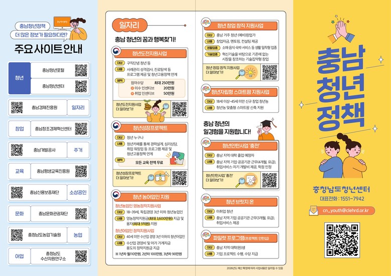 아울러 △청년도전지원사업 △청년인턴사업 ‘충전’ △청년자립형 스마트팜 지원사업 △천 원의 아침밥 △지역 정착 청년 프로그램 △청년 생활공구 대여사업 등 일자리·주거·복지·문화·교육 전반의 다양한 청년정책도 함께 알릴 계획이다.