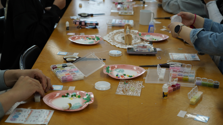 | ▲ 인천시청년미래센터 고립은둔청년 공예동아리 회원들이 비즈를 이용해 장신구를 만들고 있다. |