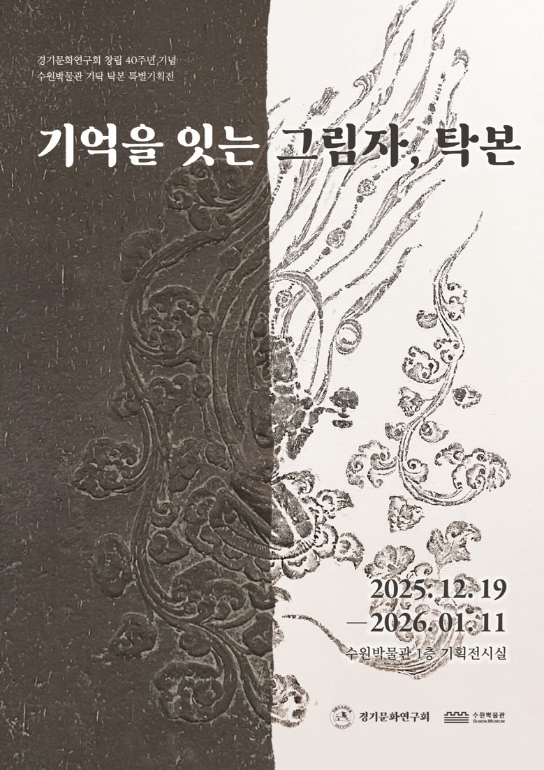 경기문화연구회 창립 40주년을 기념해 경기문화연구회가 수원박물관에 기탁한 탁본을 소개하는 이번 전시회는 내년 1월 11일까지 박물관 기획전시실에서 열린다. 국보와 보물로 지정된 비석·석물 탁본을 비롯해 다양한 주제의 탁본을 전시한다.