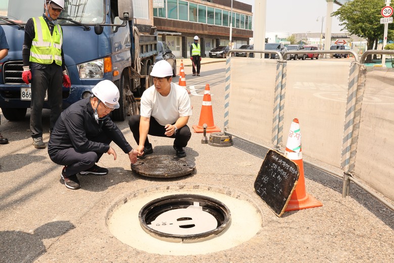 지난주 때 이른 장마로 인한 지역 곳곳에서 피해가 발생되어, 공단이 운영하고 있는 하수도 시설과 안전사고 예방을 위해 추진 중인 노후 맨홀 교체 현장을 점검했다.