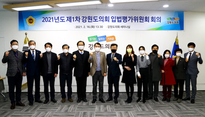 입법평가위원회는 강원도의회의원, 변호사, 법제처, 입법평가 경력자 등 자치입법 및 지방의회에 학식과 경험이 풍부한 전문가 15명으로 구성되었으며 임기는 2년(2021.1.15.~2023.1.14.)이다.