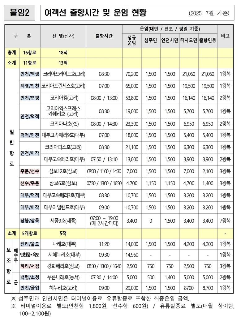 ※ 출처 : 한국해운조합 발권자료