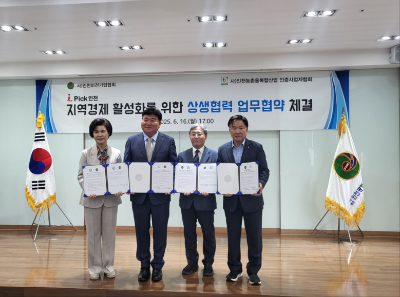 인천비전기업협회(회장 한상담)와 인천농촌융복합산업인증사업자협회(회장 김경호)는 지난 6월 16일 상호 기관 협력을 통한 지역상품 구매 촉진 및 상생 발전을 위한 업무협약(MOU)을 체결했다.