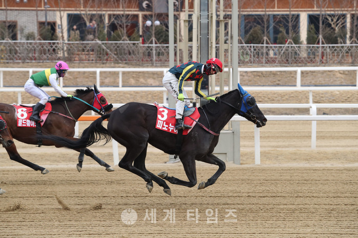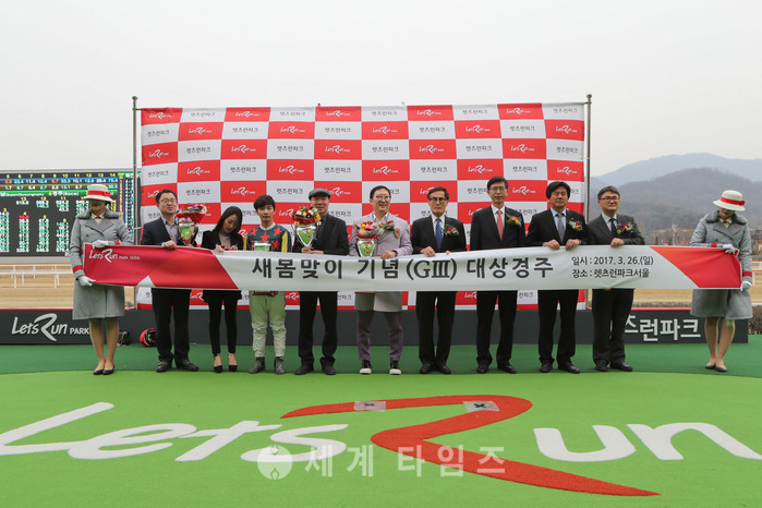 [세계타임즈 김장수 기자]3월 26일 렛츠런파크 서울 '새봄맞이 기념경주(GⅢ, 9경주, 국산, 2000M, 4세 이상 암, 레이팅오픈)'에서 박병룡 마주의 ‘피노누아(7세, R92, 54조 박천서 조교사)'’가 우승했다. 경주기록은 2분 13초 8.2017년 4세 이상 장거리 최강 여왕마의 자리를 두고 연초부터 불꽃 튀는 레이스가 펼쳐진 가운데 총상금 3억 원이 걸린 ‘새봄맞이 기념경주’는 높은 경주 그레이드만큼이나 팬들의 관심도 높았다.