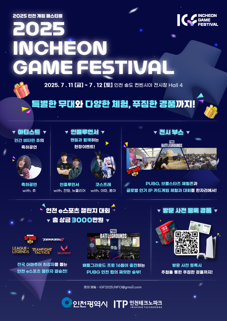 이번 행사는 전국 아마추어 게이머들이 참가하는 ‘제6회 인천 이스포츠 챌린지 대회’ 결승전을 비롯해, 인기 아이돌 츄(CHUU)의 축하공연, 게임 전시·체험 부스, 이벤트존 운영 등 다채로운 프로그램이 마련돼 관람객들의 이목을 사로잡을 예정이다.