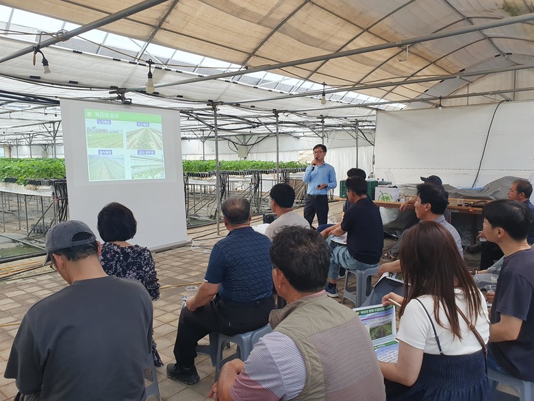 이날 교육은 딸기전문가 김종필 컨설턴트를 초빙해 딸기 모종 유인방법과 삽목방법, 모종을 키우는 육묘시설과 양분 및 온도 조절, 물주기, 육묘기 병해충 관리 등 고품질 우량 딸기 모종 생산을 위한 종합적인 재배 기술을 교육했다.