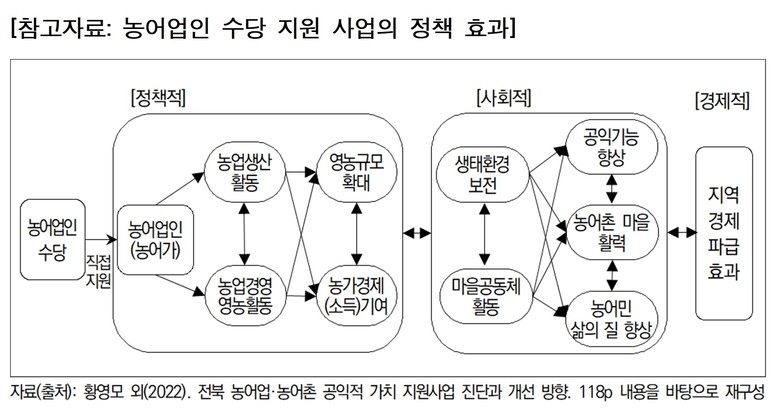 인천연구원 이미애 연구위원은 “농어업인 수당은 단순한 수당 지원이 아닌 농어업인의 삶의 질과 농어촌의 공익적 가치를 제고하는 정책 수단이다”라고 말하고, “앞으로 사업의 내실을 다지고 공익 활동 의무 강화 등 후속 조치를 통해 농어촌의 지속가능한 발전을 이끌어야 한다”라고 제언했다.