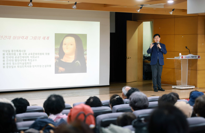 [용인시 세계타임즈=송민수 기자] 이상일 용인특례시장은 26일 처인구 용인시처인노인복지관 강당에서 열린 ‘용인노인대학 입학식’에서 입학생 120여 명을 대상으로 ‘인간의 상상력과 그림의 세계’ 특별 강연을 했다.