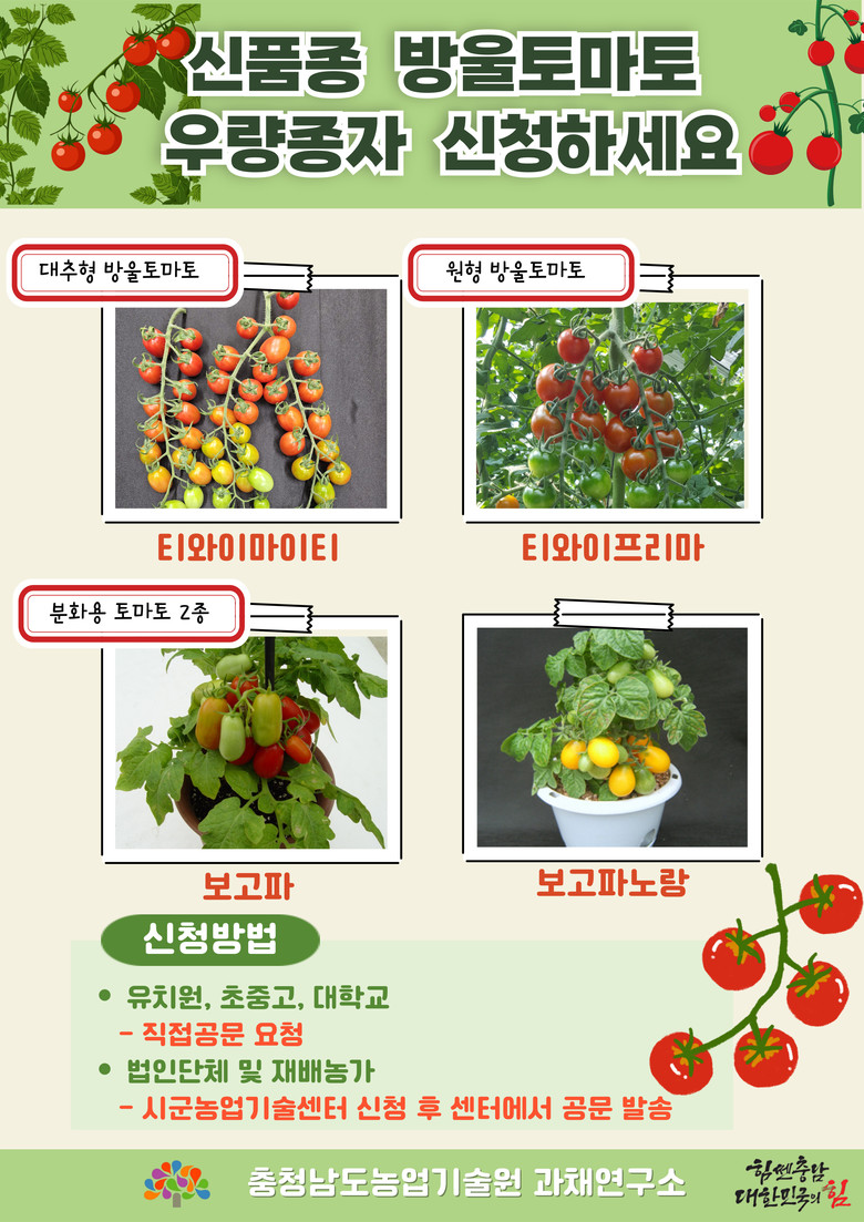 안정호 과채연구소 토마토팀장은 “토마토 신품종 우량종자를 안정적으로 생산·보급해 도내 농가와 교육·체험 현장에서 폭넓게 활용될 수 있도록 힘쓰고 있다”며, “앞으로도 고당도·내병성·다수확 특성을 갖춘 신품종 개발을 지속해 농가 소득 증대와 소비자 만족도 향상에 기여하겠다”고 말했다.
