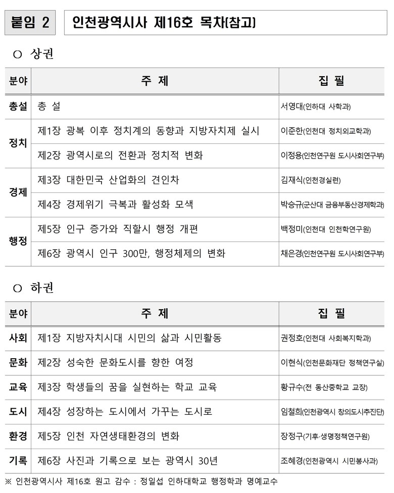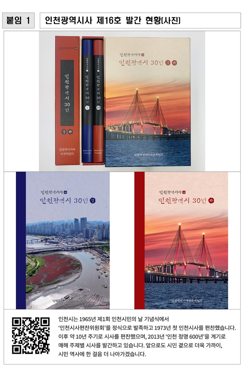 한편, 인천광역시사 제16호 ‘인천광역시 30년’은 인천시 전자책 누리집(ebook.incheon.go.kr)에서 누구나 열람할 수 있다.