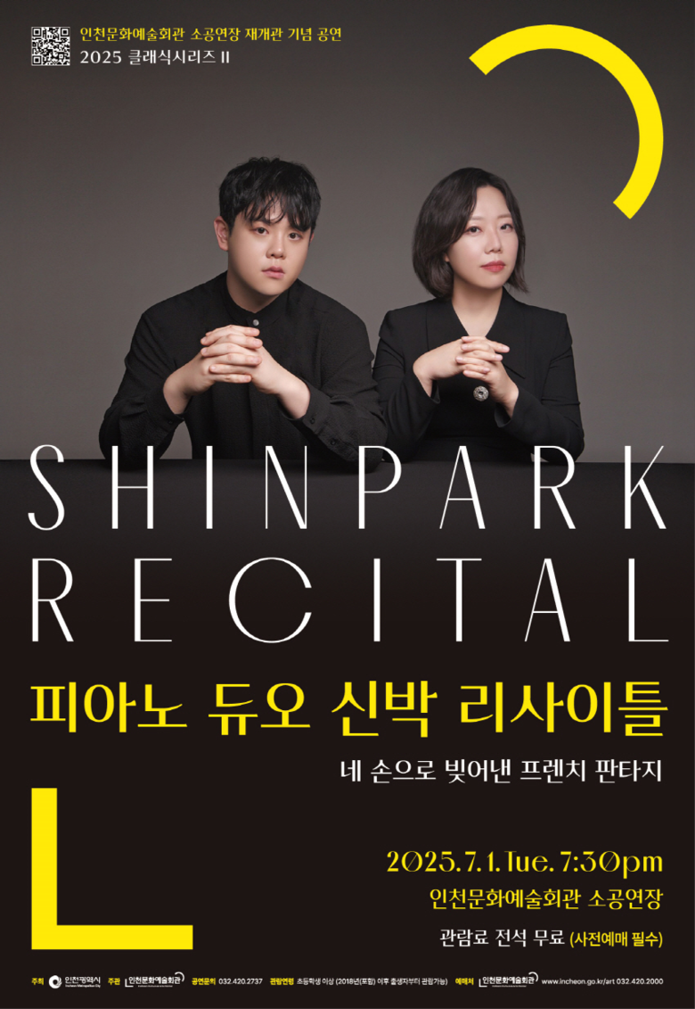 피아노 듀오 신박은 이번 무대에서 프랑스 인상주의와 낭만주의의 정수를 담은 작품들을 선보인다. 네 손이 만들어내는 정밀한 앙상블로 드뷔시의 서정과 라벨의 정교한 상상력, 그리고 비제의 유쾌한 유년의 세계를 풀어낸다. 마법 같은 색채와 시적인 울림을 통해 소공연장의 새로운 시작을 축하한다.