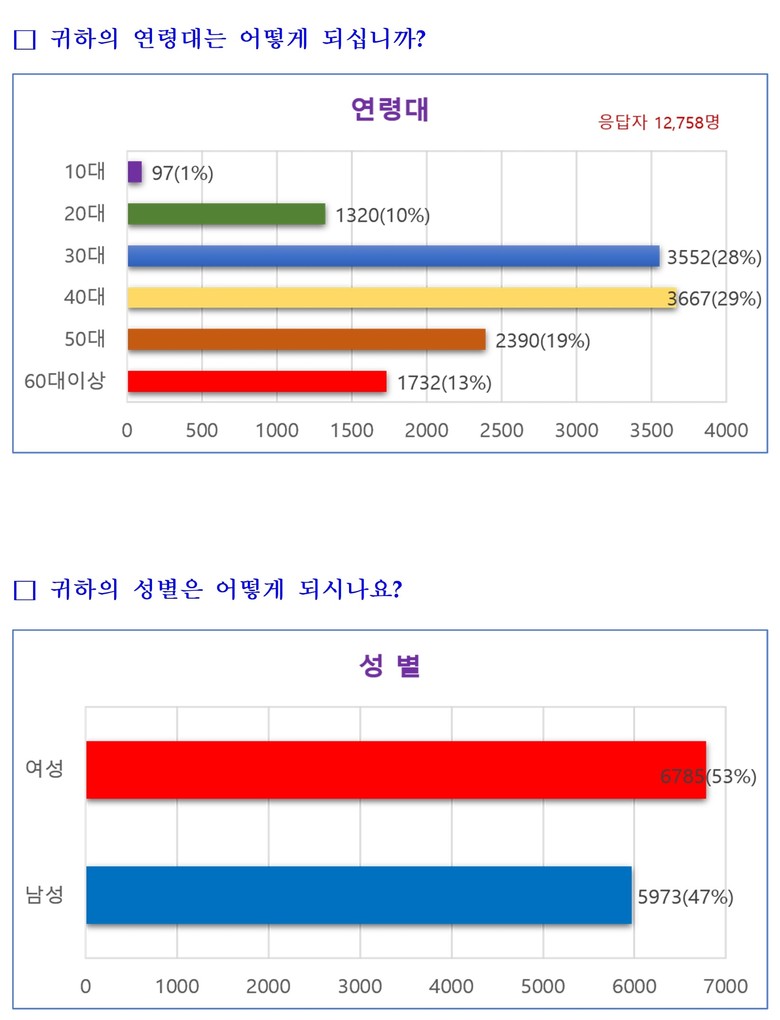 이번 조사는 지난 7월 9일부터 27일까지 약 3주간 네이버 폼 설문조사를 통해 진행됐으며, 총 12,758명이 참여했다. 참여자의 연령대별 비중은 40대가 29%, 30대가 28%로 가장 높았다.