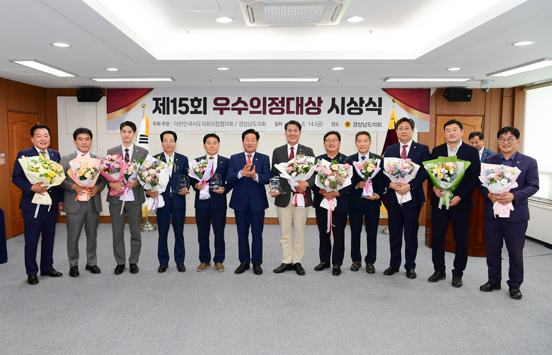 이날 우수의정대상을 수상한 의원은 우기수(국힘, 창녕2), 장병국(국힘, 밀양1), 노치환(국힘, 비례), 정수만(국힘, 거제1), 김구연(국힘, 하동), 서민호(국힘, 창원1), 유형준(민주, 비례), 이영수(국힘, 양산2), 장진영(국힘, 합천), 박주언(국힘, 거창1), 윤준영(국힘, 거제3), 최영호(국힘, 양산3) 의원 등 12명이다.