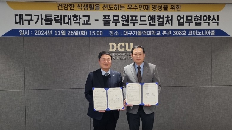 특히 이번 협약은 풀무원푸드앤컬처가 보유한 푸드서비스 전문성과 대구가톨릭대학교의 교육 역량을 결합하여 실무 경험과 취업 기회를 강화함으로써 학생들의 성공적인 진로 개발과 지속 가능한 성장을 지원하는 데 중점을 두고 있다.