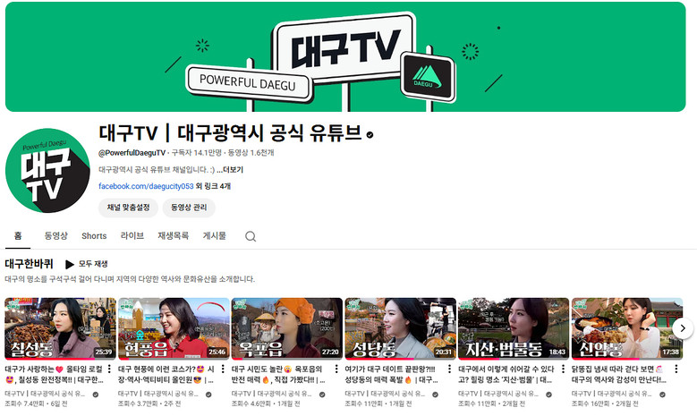 김정기 대구광역시장 권한대행 행정부시장은 “대구시 유튜브 채널 ‘대구TV’는 ‘대구한바퀴’뿐만 아니라 ‘대구리뷰’, ‘시민의삶’, ‘대구라이딩’ 등 뉴미디어 트렌드에 맞는 다양한 콘텐츠를 제작해 시민들과 소통하고 있다”며 “앞으로도 대구의 매력을 효과적으로 알리는 소통 창구로 자리매김하도록 지속적으로 노력하겠다”고 말했다.