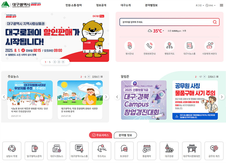 | ▲ 대구시 홈페이지 메인화면 |