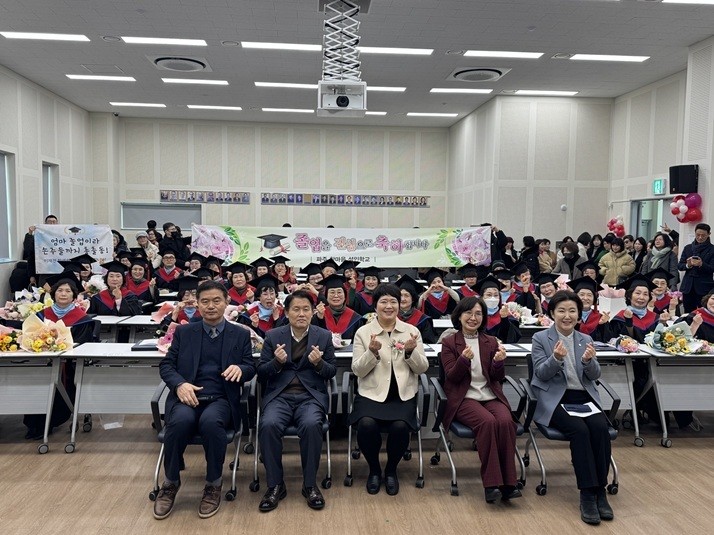 [파주시 세계타임즈=송민수 기자] 파주시는 지난 5일 금촌1동 행정복지센터 4층 대회의실에서 ‘2026년 파주한마음교육관 중학 학력인정 성인문해교육 졸업식’을 개최했다.