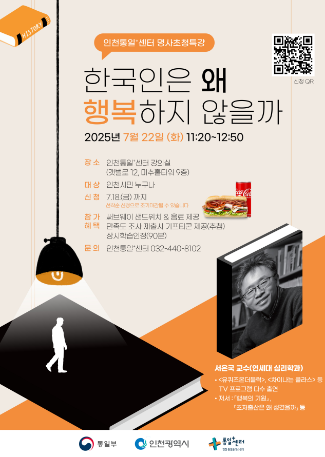 강연 신청은 인천통일플러스센터 누리집(https://www.unipluscenter.go.kr) 에서 가능하며, 시민 누구나 무료로 참여할 수 있다.