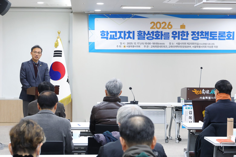 [서울 세계타임즈=이장성 기자] 서울시의회 기획경제위원회 이상훈 의원(더불어민주당, 강북2)은 지난 17일(수) 서울시의회 제2대회의실에서 「2026 학교자치 활성화를 위한 정책토론회」를 개최했다.