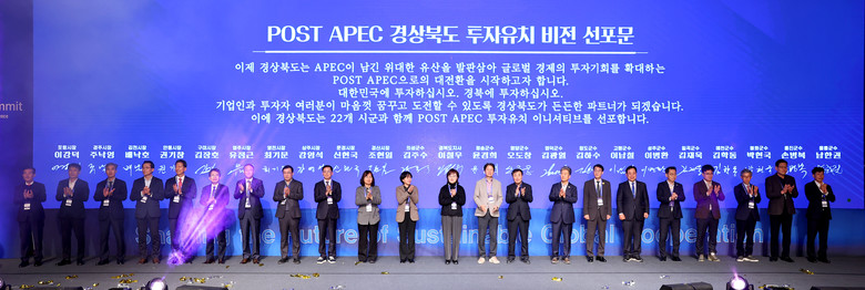 선포식에는 양금희 경상북도 경제부지사와 22개 시군 단체장, 아시아·태평양 20개국 대사관과 투자자, 대한상공회의소, 경제인 등이 참석한 가운데, POST APEC 경상북도 투자유치 이니셔티브를 발표하고 다 함께 의지를 다졌다.