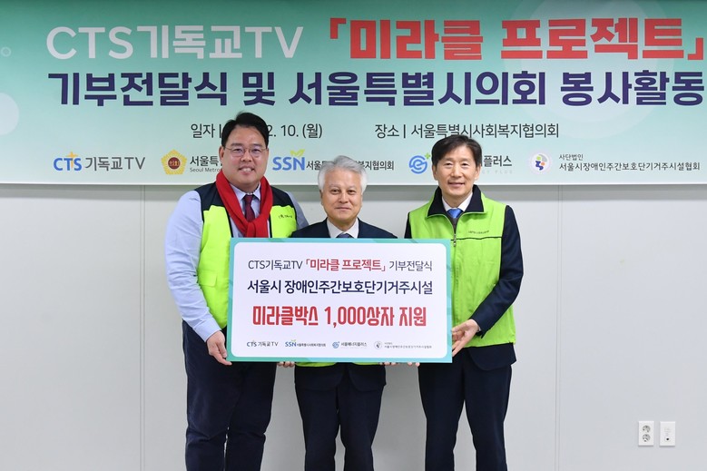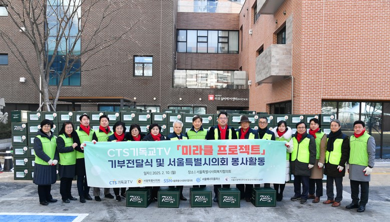 이성배 대표의원은 “오늘 이 자리는 지난 2024 성탄축제에서 미라클박스를 접한 뒤 관련 행사에 참여하기로 했던 약속을 지키는 자리” 임을 밝히며, “서울시민을 위한 나눔을 실천하고 의원님들과 함께 봉사할 수 있는 기회를 제공해 준 CTS와 사회복지협의회에 감사” 인사를 전했다.