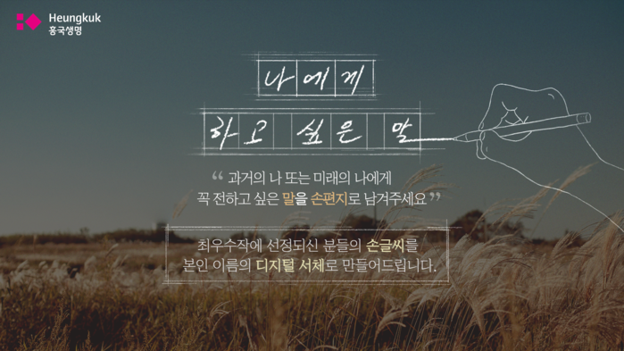 [세계타임즈 이송원 기자]태광그룹 금융계열사인 흥국생명이 디지털 기술의 발달로 점점 사라져가고 있는 손글씨의 아름다움과 소중함을 알리기 위한 고객 공감 이벤트로 '제1회 디지털 손글씨 공모전'을 진행한다고 9일 밝혔다.