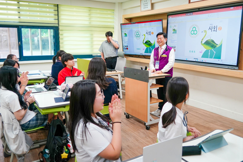 | ▲ 지난 5월 휘경여자중학교에서 진행된 'IB 공개 참관수업 및 수업 나눔 평가회'에 참석한 이필형 동대문구청장 |