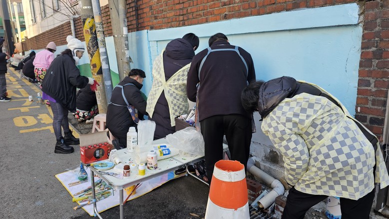 이날 봉사활동은 오래되고 낡은 벽면을 밝고 따뜻한 벽화로 새롭게 단장하는 도시 미관 개선 활동으로 진행됐다. 참여자들은 추운 날씨에도 불구하고 화기애애한 분위기 속에서 벽화 작업에 열중하며 지역에 활력을 불어넣었다.