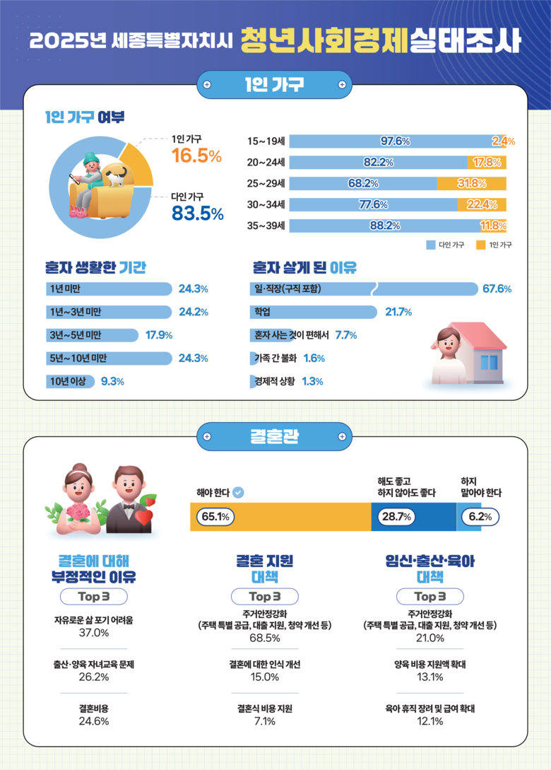 시는 31일 3년 주기 국가승인통계인 ‘2025년 청년사회경제실태조사’ 12개 부문 66개 문항 결과를 발표했다.