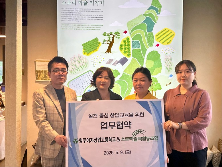 [충북 세계타임즈=이현진 기자] 청주여자상업고등학교(교장 김현희)는 9일(금), 소로리쌀쿡협동조합과 업무협약을 체결하고 지역 공동체 활성화를 위한 실천 중심 창업교육을 본격 추진한다고 밝혔다.