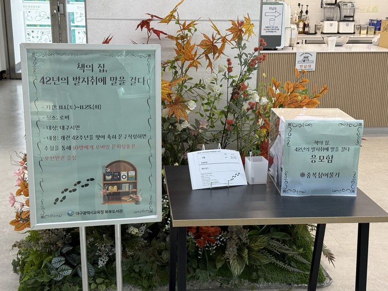 [대구 세계타임즈=한윤석 기자] 대구북부도서관(관장 제갈선희)은 개관 42주년을 맞이하여 11월 한 달간 대구 시민 누구나 참여할 수 있는 10개의 기념 특별 행사를 운영한다.
