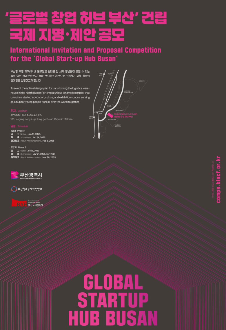 ‘글로벌 창업허브 부산’은 지난해(2024년) 7월 중소벤처기업부 공모사업으로 선정됐으며, 이번 공모는 시와 (재)부산창조경제혁신센터가 주최하고, 사단법인 부산국제건축제 조직위원회가 공모 관리를 맡아 진행한다.