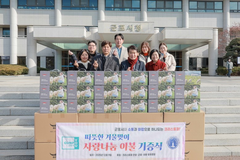 [군포시 세계타임즈=송민수 기자] 군포시는 지난 9일(화) 군포·안양·의왕지역에서 활동하는 봉사단체 크리스토퍼로 부터 양모이불 50채(400만원 상당)를 기탁받았다.