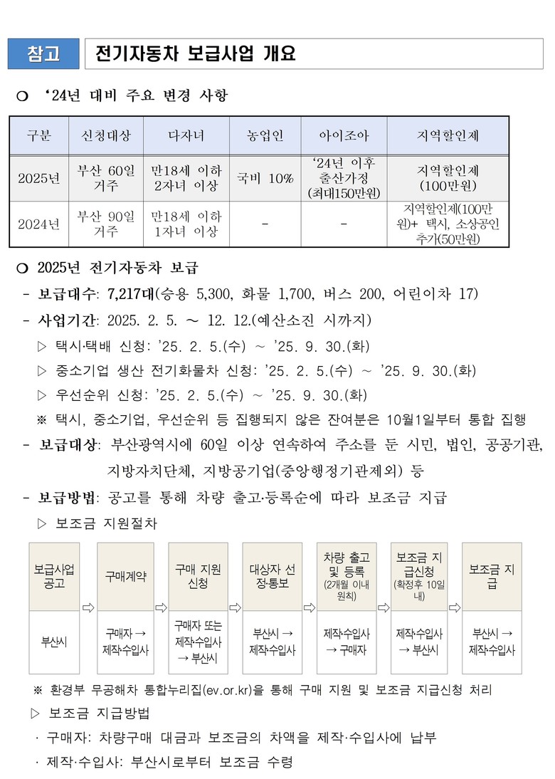 이병석 시 환경물정책실장은 “2024년은 전기자동차 화재 및 경기 부진 등으로 전기자동차 보급에 많은 어려움이 있었지만 부산만의 특색있는 보급 정책으로 이겨낼 수 있었다”라며, “올해 역시 다양한 전기자동차 보급 확대 정책으로 대기환경의 지킴이로 아이를 낳고 키우기 좋은 환경의 부산을 만드는 데 이바지하기를 기대한다”라고 전했다.