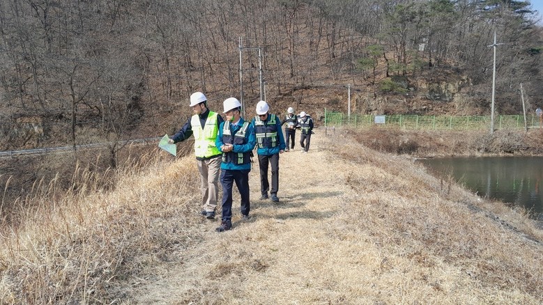| ▲ 해빙기 저수지 점검(제방 및 하류사면) |
