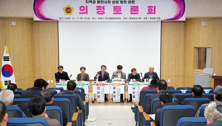 토론회에는 좌장을 맡은 충남도의회 편삼범 의원(보령2·국민의힘)을 비롯해 윤희신 의원(태안1‧국민의힘), 김동일 보령시장, 최은순 보령시의회의장, 조장현 보령시의원, 각급 기관단체장, 시민 등 100여 명이 참석했다.