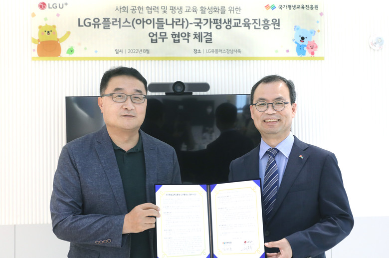 협약식은 U+아이들나라 강남사옥에서 LG유플러스 박종욱 아이들나라CO(Chief Officer, 전무), 국가평생교육진흥원 강대중 원장 등 주요 관계자가 참석한 가운데 진행됐다.