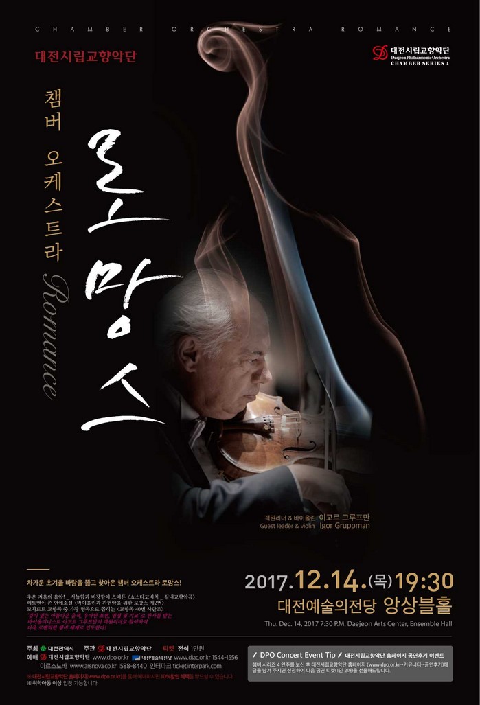 이번 공연은 솔리스트로도 뛰어난 역량을 지닌 대전시립교향악단의 단원들이 꾸미는 감각적이고 열정적인 무대로, 지휘자와 독주자로 세계적인 활동을 펼치고 있는 이고르 그루프만(Igor Gruppman)이 객원리더로 참여해 현악 앙상블의 진수를 선보인다.