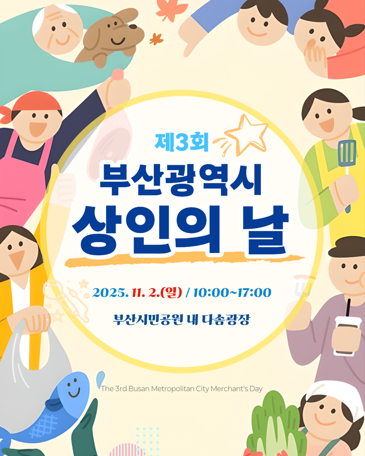 마지막 날인 11월 2일에는 「제3회 부산광역시 상인의 날」 행사가 함께 열린다. 2천여 명의 상인이 참여해 ▲개막식 ▲상인역량강화 교육 ▲축하공연 등 상인 간 화합과 자긍심을 높이는 뜻깊은 자리가 마련된다.