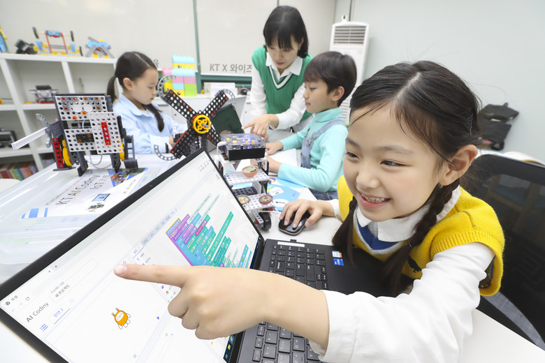 KT ‘AI 코디니’는 복잡하고 어려운 기존 코딩 방식 대신 블록 형태로 쌓아가며 AI 코딩을 잘 모르는 사용자들도 AI 코딩의 원리를 쉽게 이해 할 수 있도록 만든 AI 교육 플랫폼이다. 초등학생이나 중학생 등 코딩 입문자들도 마우스 클릭만으로 AI 서비스를 구현할 수 있다. ‘KT AI IoT 키트’는 AI 하우스, AI 팩토리, AI 비서, 로봇 등 다양한 기기들을 직접 제작하고 작동할 수 있도록 하는 자율 조립형 도구 모음이다.