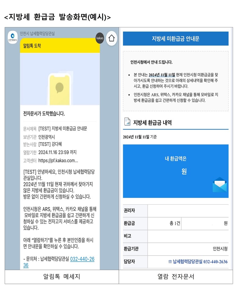 사업이 완료되면 연간 약 300만 건의 모바일 전자고지가 가능해져 시민들의 납부 편의가 크게 향상되고, 행정업무 효율도 제고될 것으로 기대된다. 특히 지방세 환급 안내를 카카오 알림톡으로 제공해, 납세자는 카카오톡 화면에서 환급 금액 확인과 신청을 간편하게 처리할 수 있다.