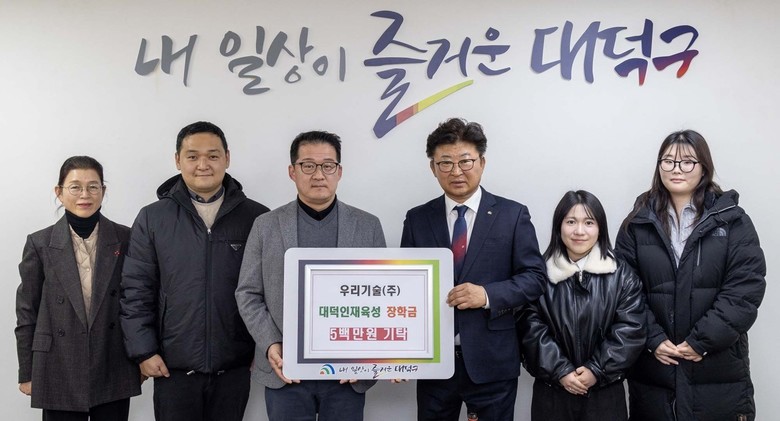 대덕구 관계자는 “지역 취약계층 학생들에게 관심을 갖고 후원을 해주신 우리기술㈜에 진심으로 감사드린다”며 “기탁된 성금은 학생들이 꿈을 키우고 학업에 전념할 수 있도록 소중히 사용하겠다”고 전했다.