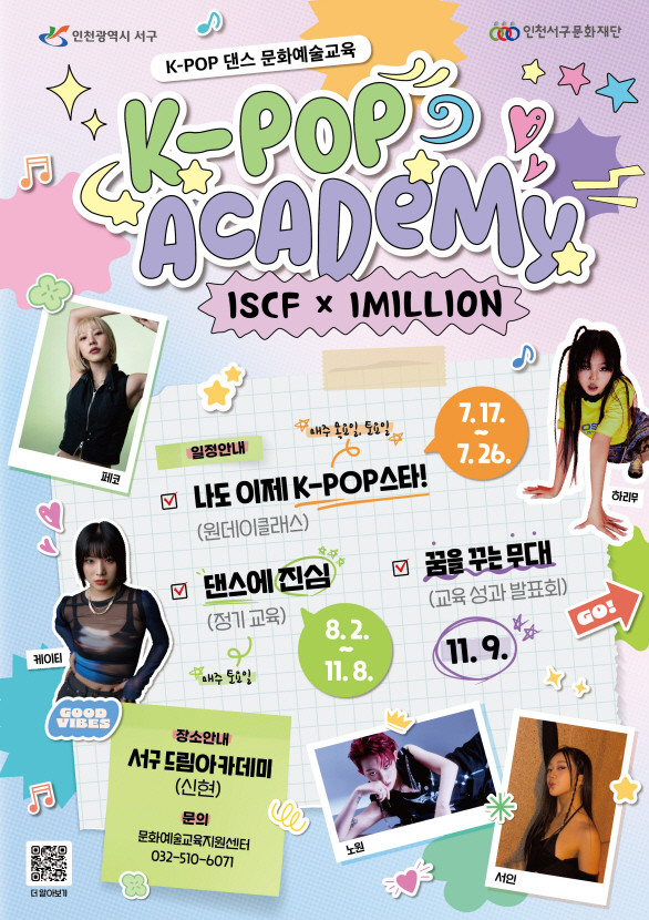 인천서구문화재단은 “이번 K-POP 댄스 교육을 통해 아동·청소년들이 창의력과 표현력을 키우고, 함께 소통하며 성장하는 소중한 경험을 하게 되기를 기대한다”며 많은 관심과 참여를 당부했다.