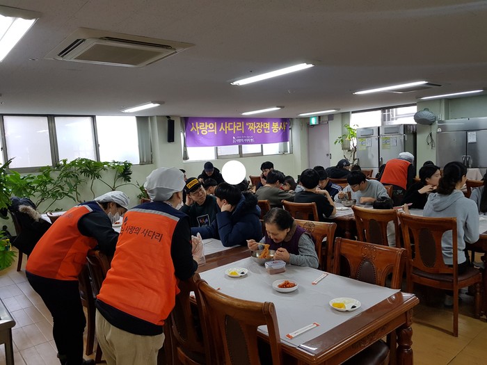 [대전=세계타임즈 이장성 기자] 대전시 SNS 봉사단체 사랑의 사다리 밴드(리더 이정제)는 16일 오전10시,동구 소제동에 위치한 자헤원(원장 양승연)에서 짜장면 봉사로 우리 사회의 따뜻한 사랑을 실천 하였다